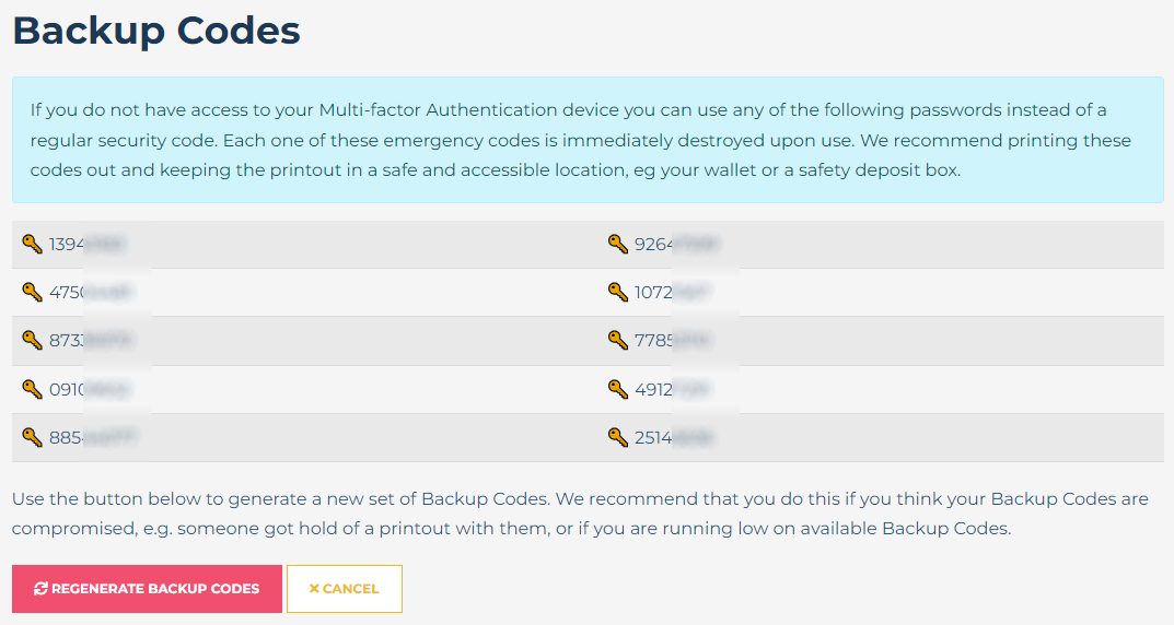 Enter one of the codes you have printed, this code will be destroyed once used and can not be used again.