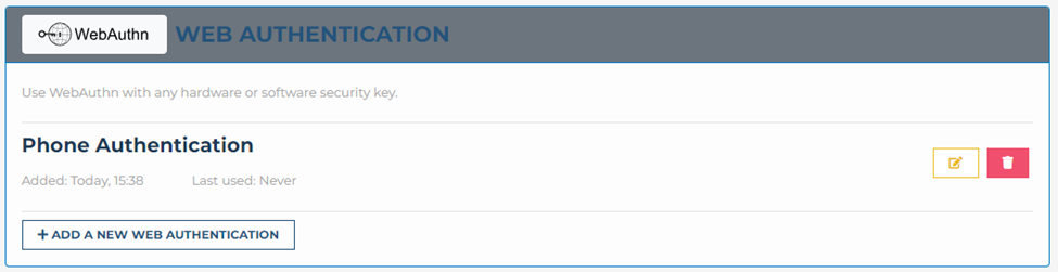 Web Authentication is now configured