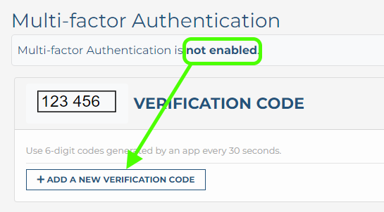 From the MFA options listed under your profile verify that there are no existing MFA verification codes setup then click add new verification code.