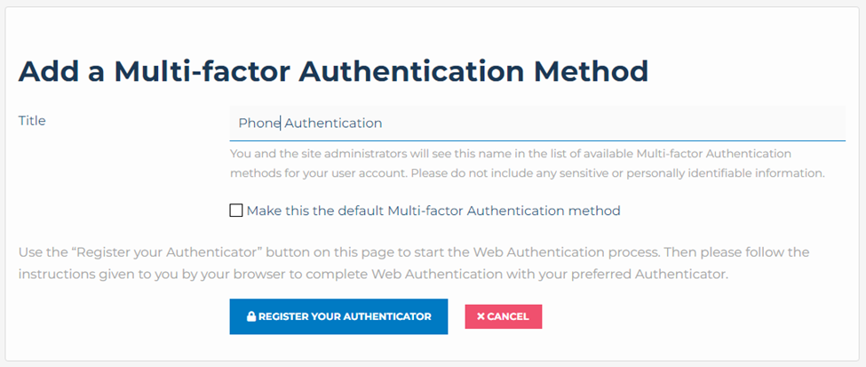 - You can make this the default method, this can be changed at any time by editing your profile.