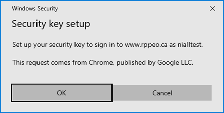 You will see this popup with Chrome and Edge, click okay. This MFA method is not supported by Firefox.
